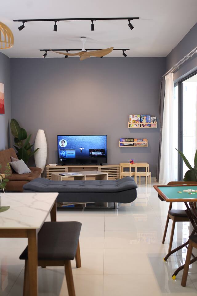 Immerse yourself in the warmth and charm of our Spacious 3BR Family Villa, a tropical paradise where every day begins with sun-kissed balcony views over lush gardens and a glistening pool. Feel the spaciousness of 11-foot ceilings as you unwind in the airy living room, lounging on the sofa bed with your favourite Netflix shows on a massive 58-inch TV. Culinary adventures await in the fully-equipped kitchen, complete with essentials like a microwave, kettle, and gas stove. Share meals and laughter at the 6-seater dining table, creating memories that linger long after the night ends. Each bedroom is a haven of comfort, featuring queen beds so plush, leaving them might be your only challenge. Refresh and recharge in the bathroom equipped with a rain shower, large mirrors, and ultra-plush towels. Individual A/C units and breezy ceiling fans ensure comfort in every corner. Stay connected with blazing fast 500 Mbps WiFi, and enjoy the sleek, clean ambiance set by the large floor tiles and high ceilings throughout. Your tropical escape in our villa is more than a stay; it's a heartwarming experience of relaxation and joy. Book now for a resort-style staycation that feels just like home, yet so much more.