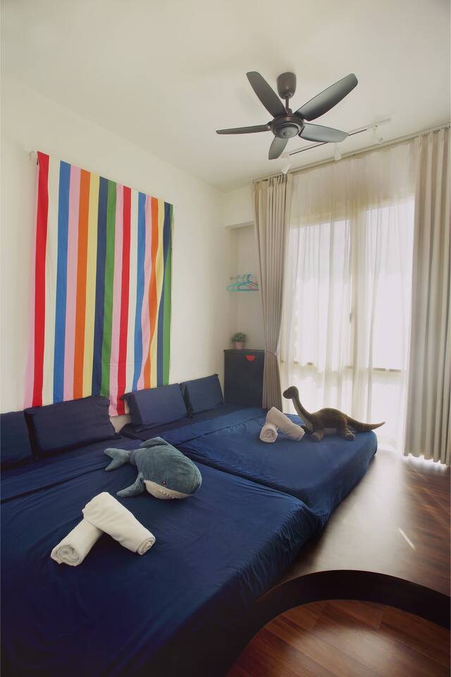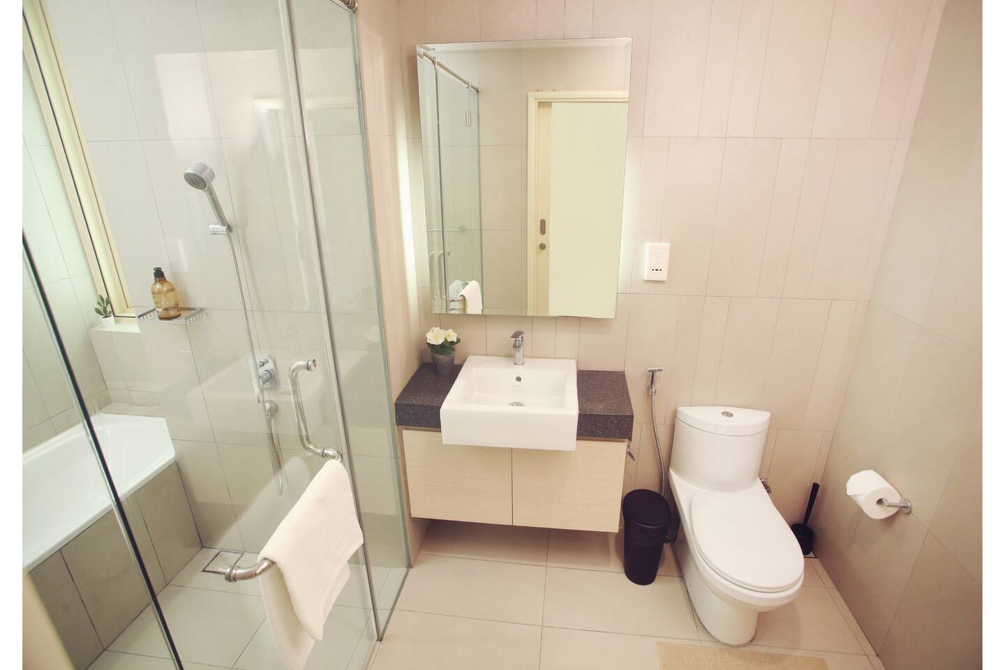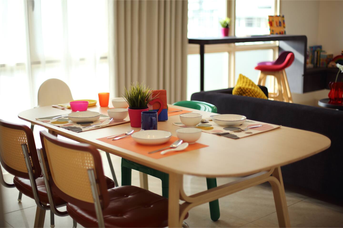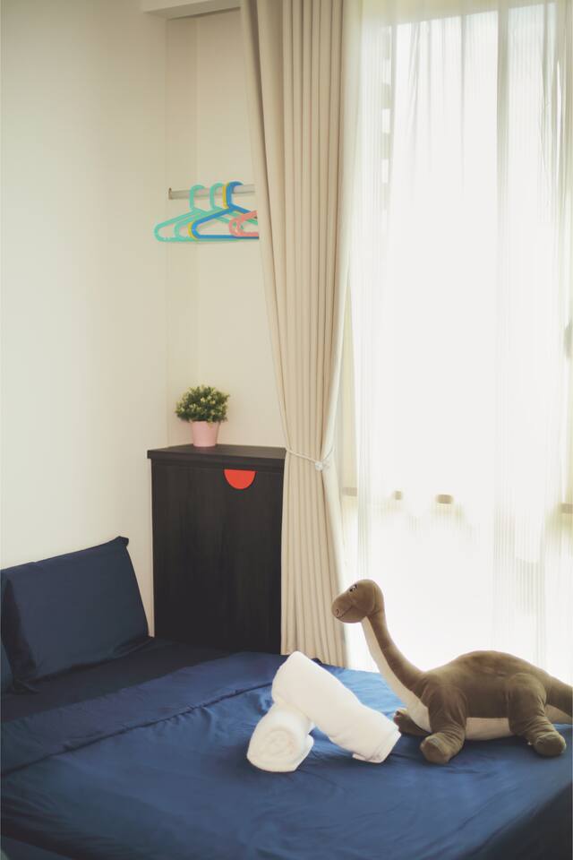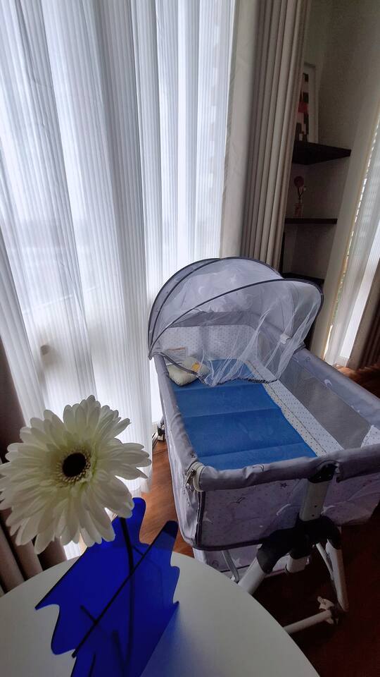 Guests have full access to the entire apartment during their stay. This includes both bedrooms, both bathrooms, the living room, dining area, fully equipped kitchen, and the dedicated workspace. Children will love the special amenities we've provided just for them, including a giant teddy bear, kids' tent, and a play kitchen. You'll also enjoy the following: - Swimming Pools: Access to both the adult and kid swimming pools located on Level 22. - Gym: Keep active with access to the gym on Level 22. - Outdoor Playground & Garden: Perfect for kids, located on Level G. 🔑 Key Card Access: 1 key card is provided for secure entry to the apartment and facilities. 🚗 Complimentary Parking: 1 free parking spot is available for your vehicle. 🧴 Toiletries Provided: Shampoo, body wash, single-use toothbrushes, and toothpaste are included.