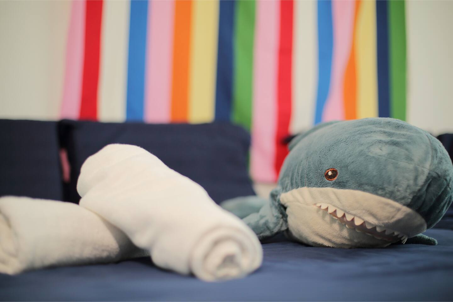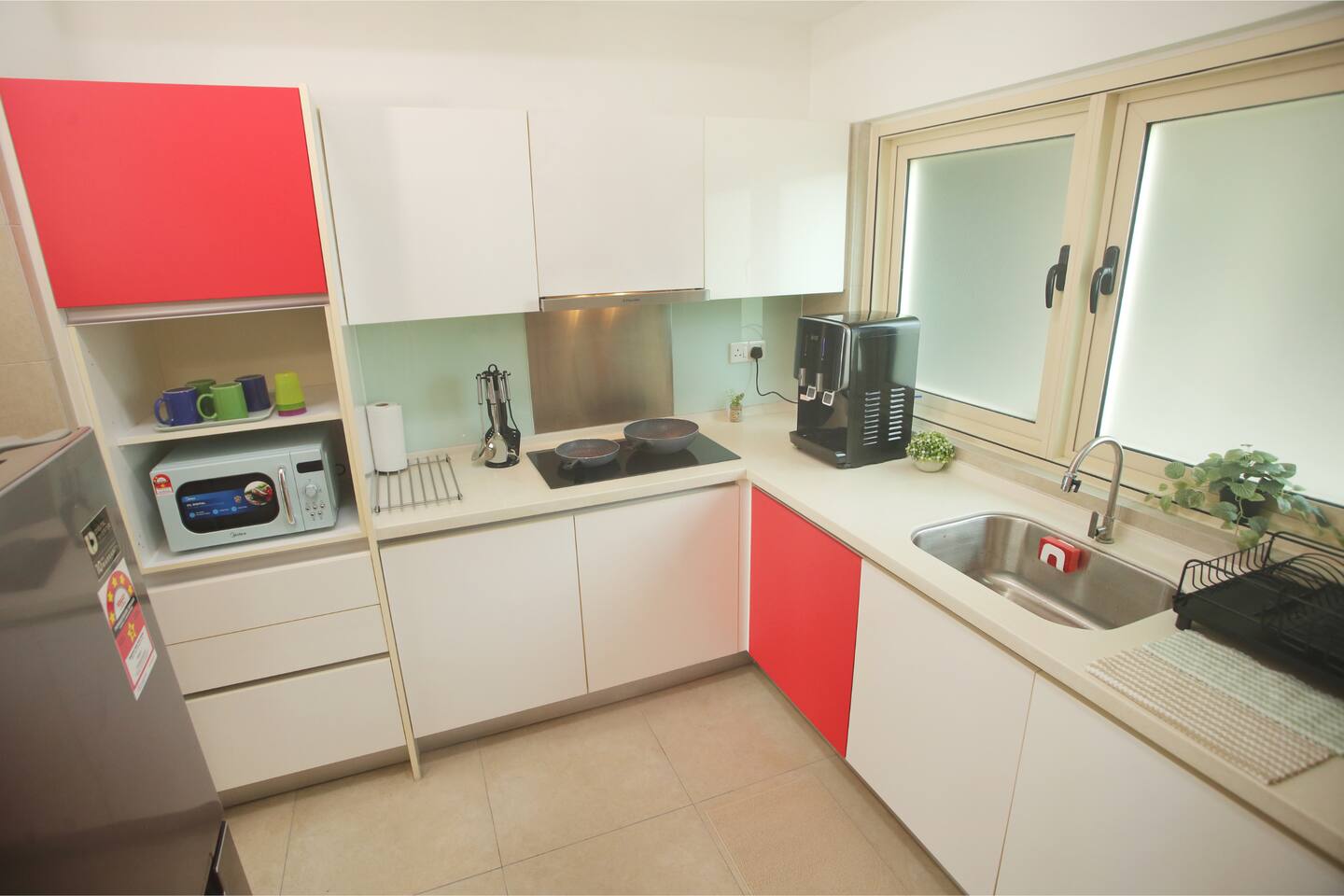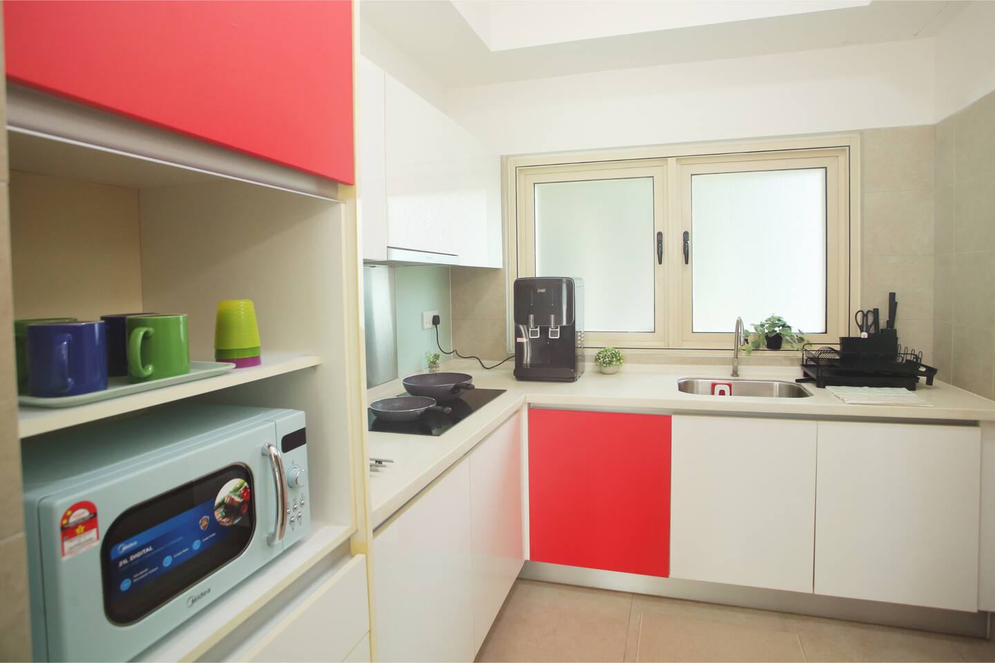 Guests have full access to the entire apartment during their stay. This includes both bedrooms, both bathrooms, the living room, dining area, fully equipped kitchen, and the dedicated workspace. Children will love the special amenities we've provided just for them, including a giant teddy bear, kids' tent, and a play kitchen. You'll also enjoy the following: - Swimming Pools: Access to both the adult and kid swimming pools located on Level 22. - Gym: Keep active with access to the gym on Level 22. - Outdoor Playground & Garden: Perfect for kids, located on Level G. 🔑 Key Card Access: 1 key card is provided for secure entry to the apartment and facilities. 🚗 Complimentary Parking: 1 free parking spot is available for your vehicle. 🧴 Toiletries Provided: Shampoo, body wash, single-use toothbrushes, and toothpaste are included.