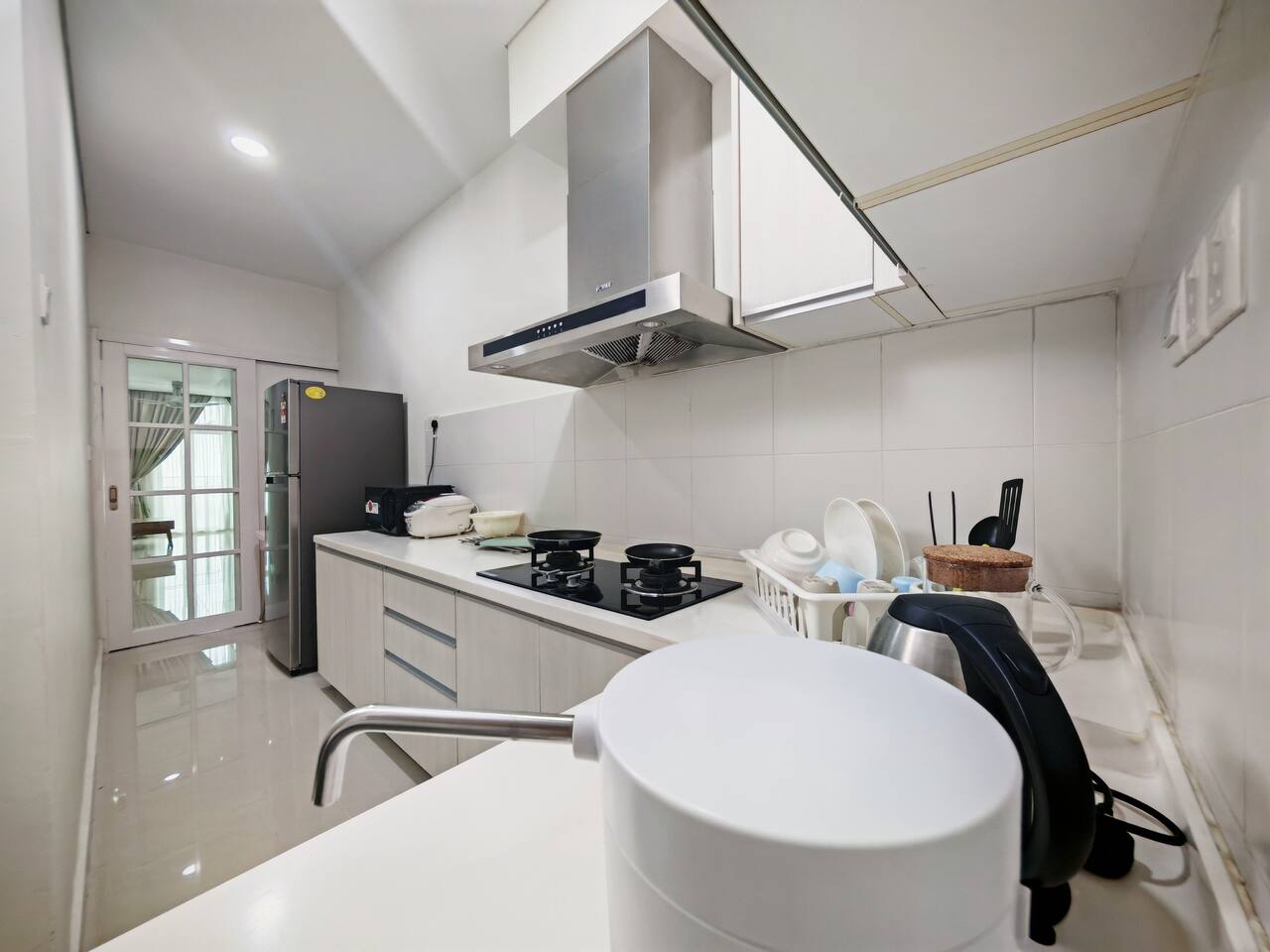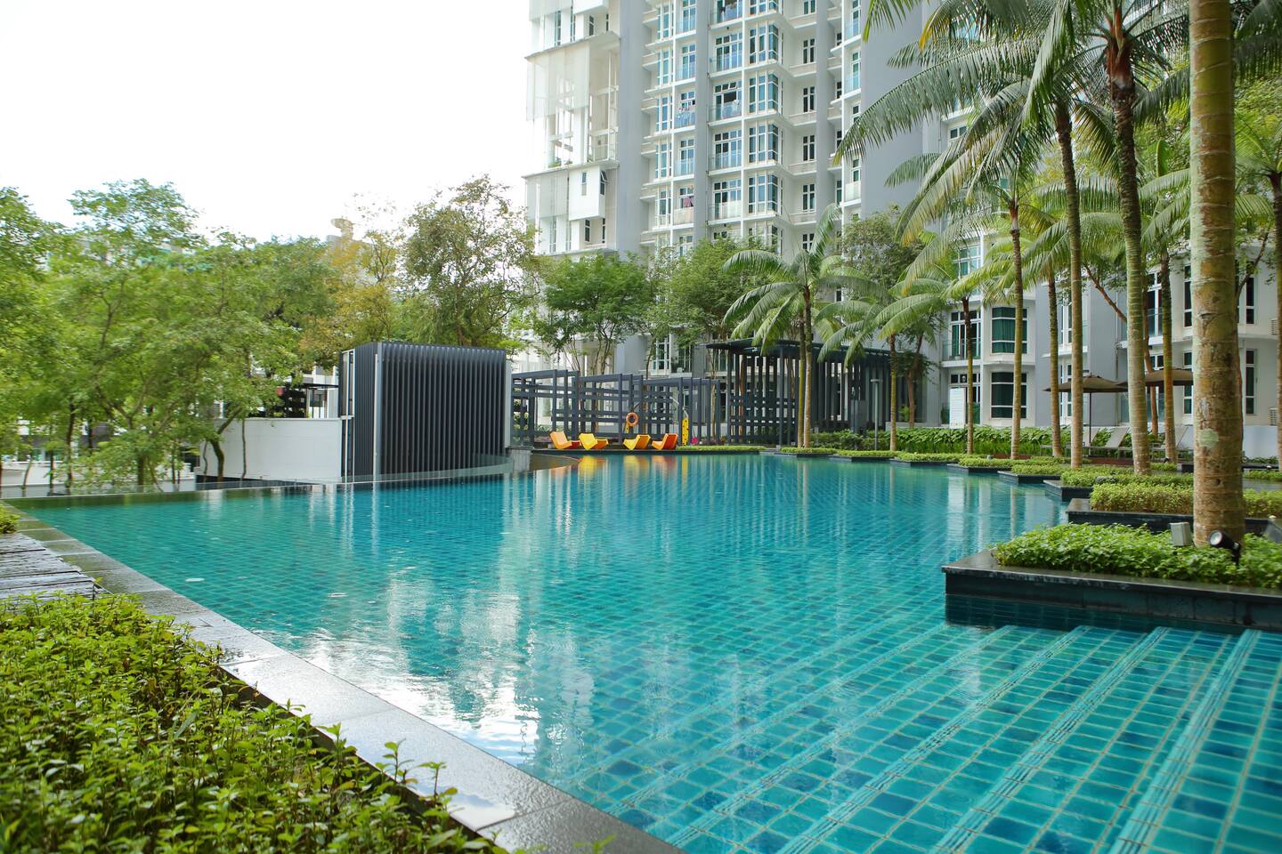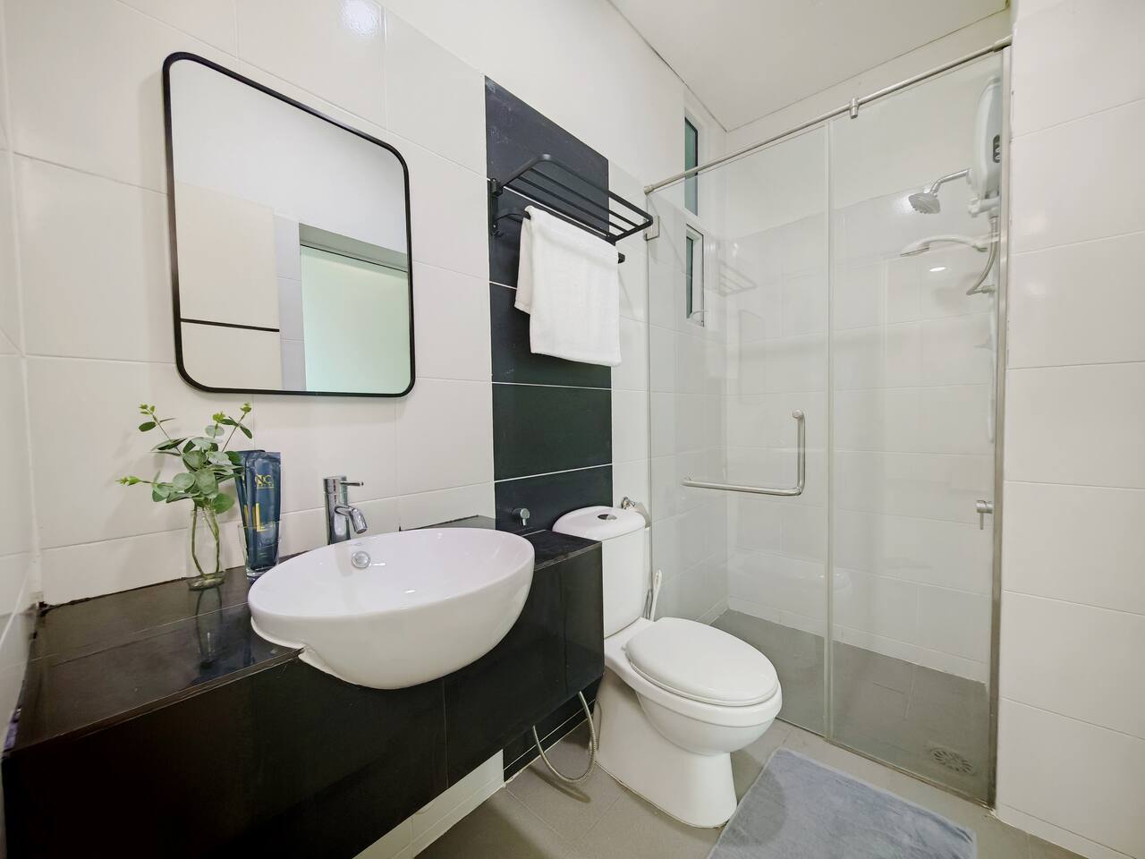 Family-friendly 2BR on the 16th floor ... just a 3-min drive to Legoland. Clean, comfy and practical with a full kitchen, fast Wi-Fi, AC and a washer. Master has a queen; second room has two singles; baby cot available. Resort perks downstairs: pools, gym, playground and gardens. Lift access and 1 free indoor parking. Grab rides are easy, cafes. Simple stay, smooth check-in... message us if you need a high chair or late checkout.