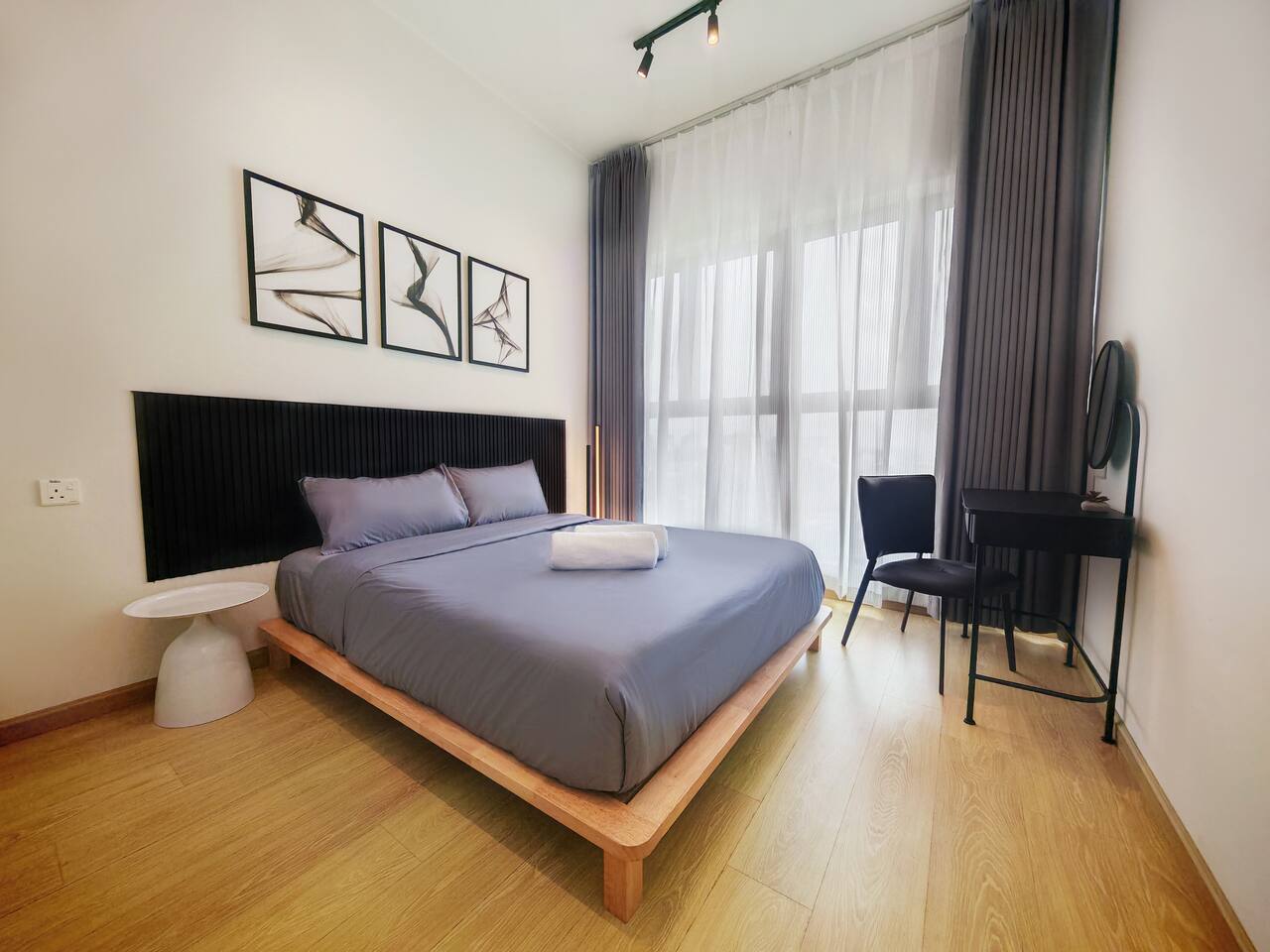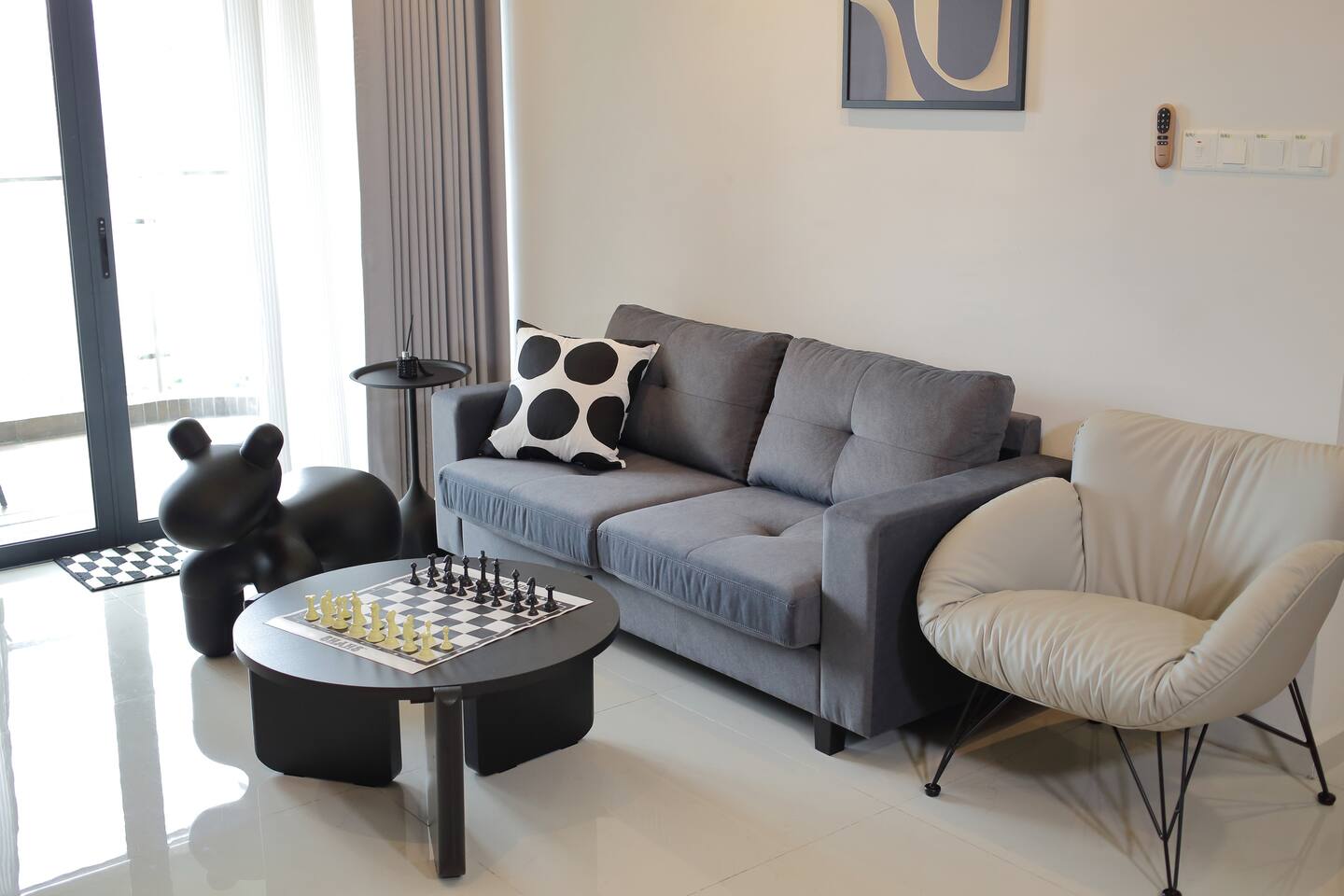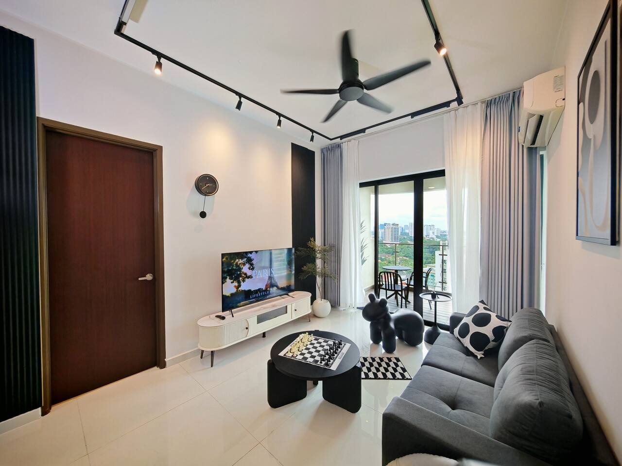 This 2-bedroom, 2-bathroom home in Country Garden Danga Bay is styled in black and white, inspired by MJ’s famous song "Black or White" as a little tribute to him :) It’s cosy, clean and full of character. You’ll find comfy beds, a full kitchen, a nice sofa to chill on, and even a little chess corner. Just 2 minutes walk from the beach, it’s a great spot for couples, families or anyone looking for a relaxing escape!