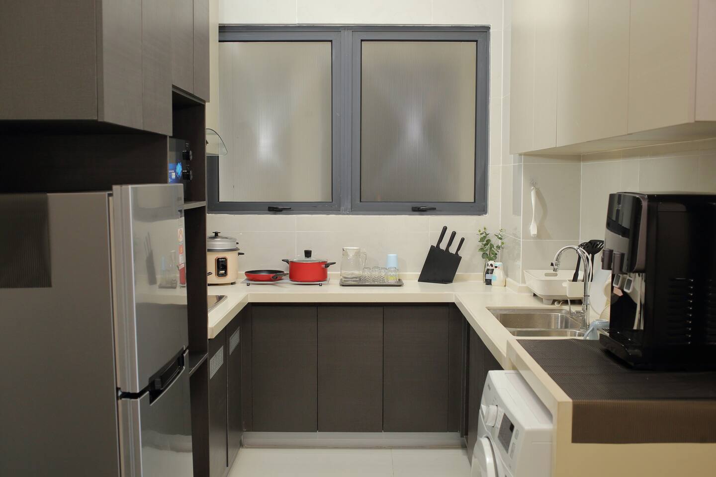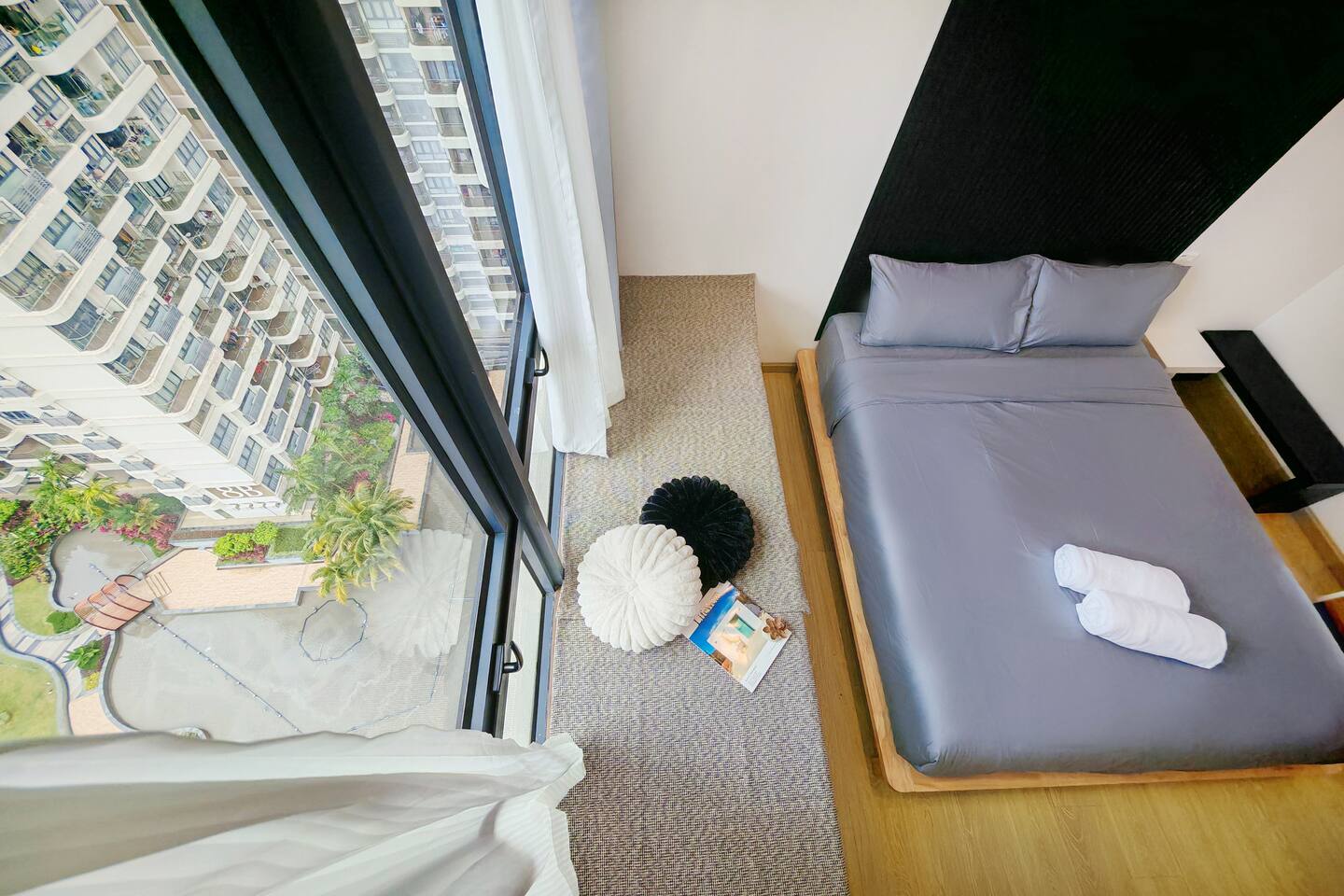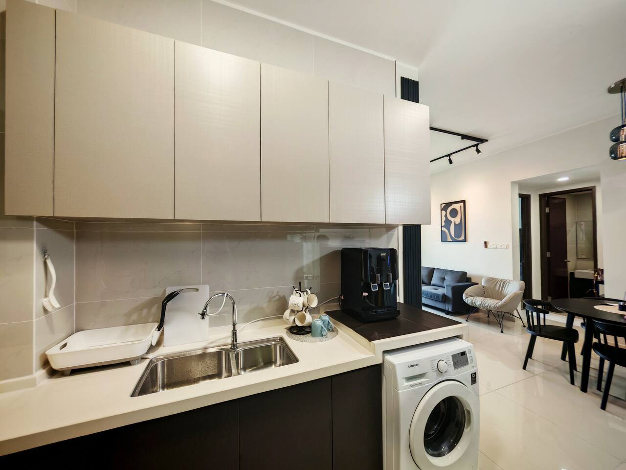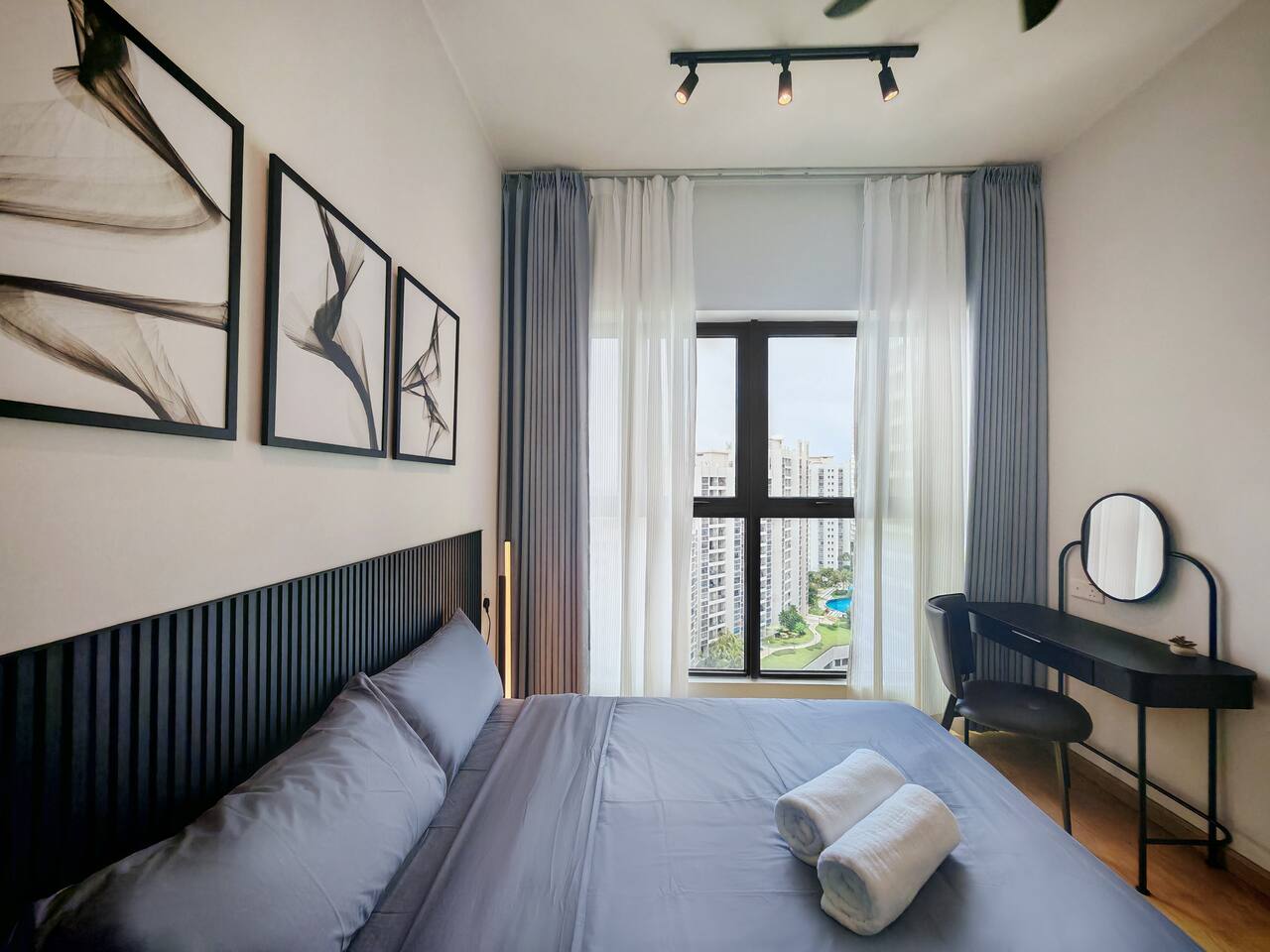 This 2-bedroom, 2-bathroom home in Country Garden Danga Bay is styled in black and white, inspired by MJ’s famous song "Black or White" as a little tribute to him :) It’s cosy, clean and full of character. You’ll find comfy beds, a full kitchen, a nice sofa to chill on, and even a little chess corner. Just 2 minutes walk from the beach, it’s a great spot for couples, families or anyone looking for a relaxing escape!