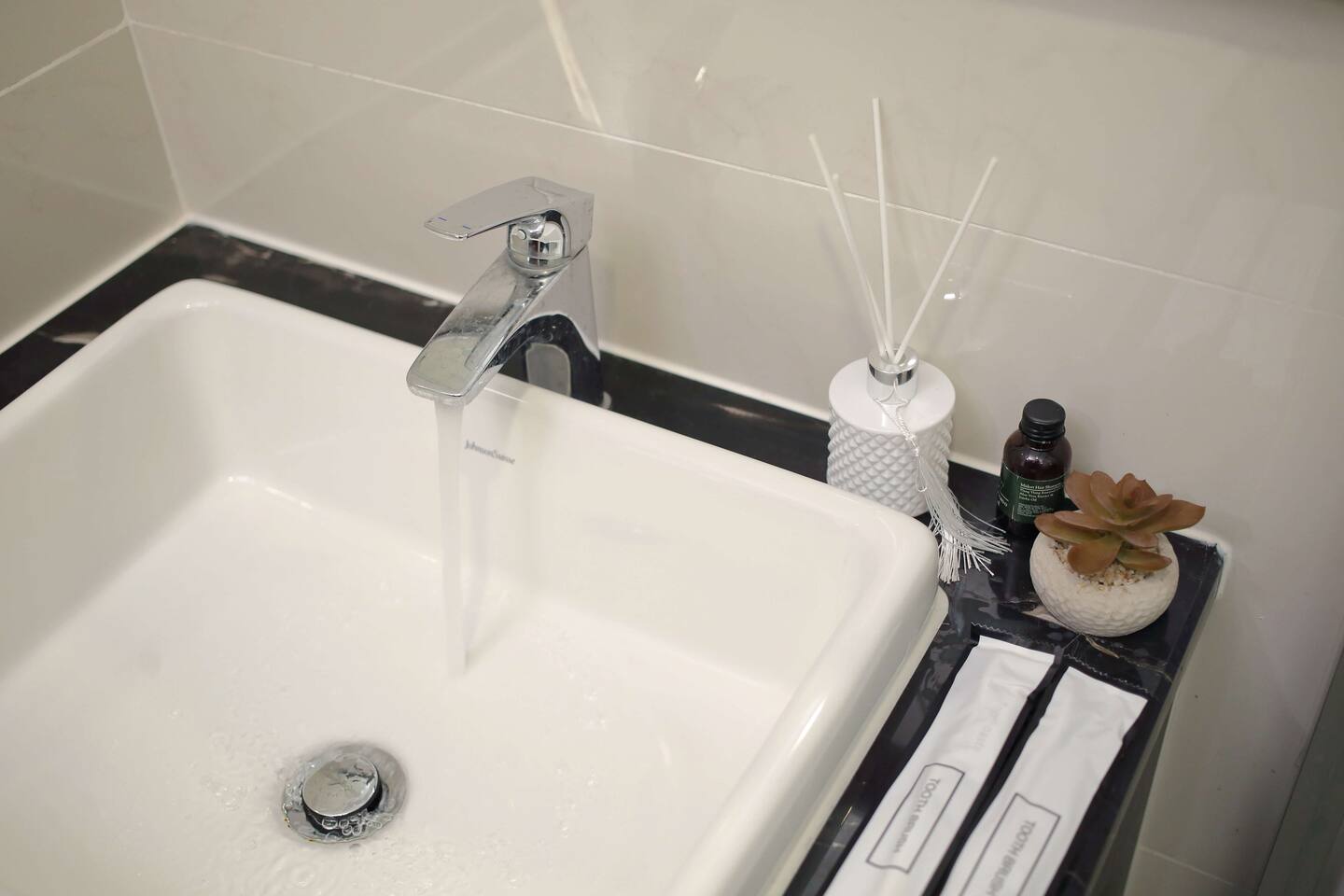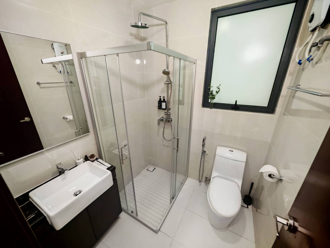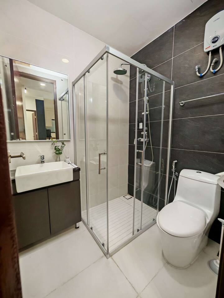 1. 🔑 Keycard: You'll have one keycard to easily access the apartment and all building facilities. 2. 🚗 Free Parking: There's one free parking space waiting for your car. 3. 🧴 Basic Toiletries: We provide shampoo, body wash, and toothbrushes ... just bring yourself! 4. 🛁 5-Star Hotel Quality Towels: Soft, fluffy towels ... ready for you to enjoy!