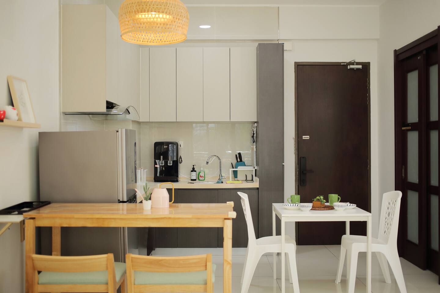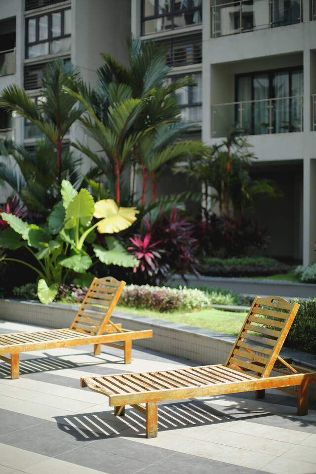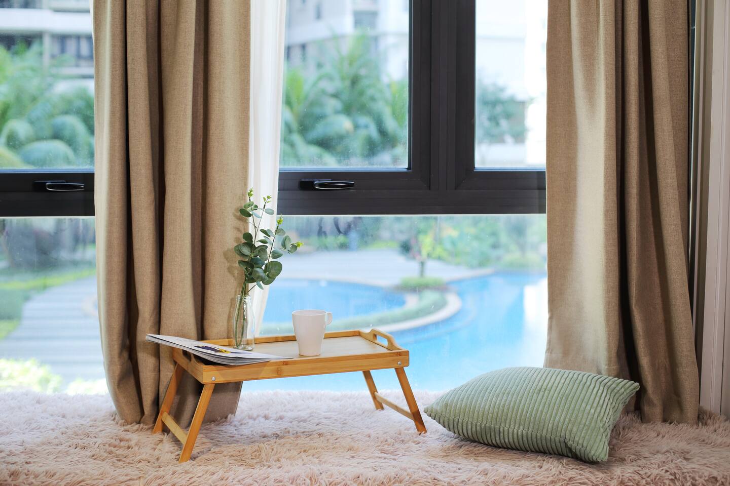 1. Relax under the tropical sun from your private balcony, gazing at lush gardens and a shimmering pool - the idyllic beginning to any day in paradise. 2. Step inside to a luminous living space made expansive by its 11-foot ceilings. Lounge on the comfy sofa bed, indulging in a binge-watch session with Netflix and global entertainment on the impressive 58-inch TV. 3. Create culinary delights in a kitchen that boasts all the essentials - from a microwave and kettle to sharp knives, a cutting board, scissors, and a gas stove. Savour your meals and heartwarming conversations at the cozy 4-seater dining table. 4. Drift into restful sleep in bedrooms graced with sumptuously soft queen beds wrapped in Egyptian cotton sheets – an embrace so comforting, you might just want to stay in bed all day. 5. Rejuvenate in the bathroom, complete with a soothing rain shower, clear mirrors, and lavish towels. 6. Stay cool with individual A/C units in each room or the refreshing breeze from ceiling fans in the living area. Always stay connected with lightning-fast WiFi. 7. Modern large tiles offer a chic, polished ambiance, complemented by the expansive feel of the 11-foot ceilings. 8. Embark on a worry-free tropical escape in this homely haven. Secure your reservation now for a serene, resort-like retreat!