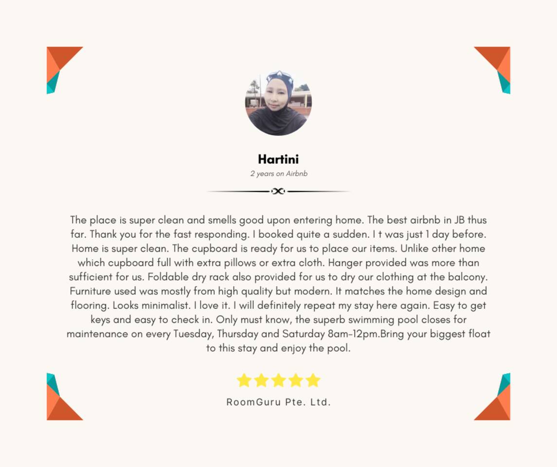 Discovering our neighbourhood? Here's your guide! 1. Ride & Revel: Take advantage of our complimentary shuttle bus that connects you to 15 dynamic locales in Johor Bahru. Whether you're on a shopping spree or a culinary journey, you're a smooth ride away from it all. 2. Bound for Singapore? Planning to hop across the border? The Causeway (CW) bus will whisk you straight to Johor Causeway Point in Singapore. And the best part? The bus terminal is merely a short walk from our doorstep. 3. Adventure on Foot: Attractions like the Danga Bay World Theme Park and Beletime Danga Bay Mall are close enough for spontaneous exploration. For destinations slightly further away, local taxis and Grab are ready to chauffeur you. 4. Easy Parking: Say goodbye to parking hassles. Guests are entitled to a complimentary parking space, overseen 24/7. Park, relax, and embark on your urban exploration with peace of mind! Your exploration gateway awaits!